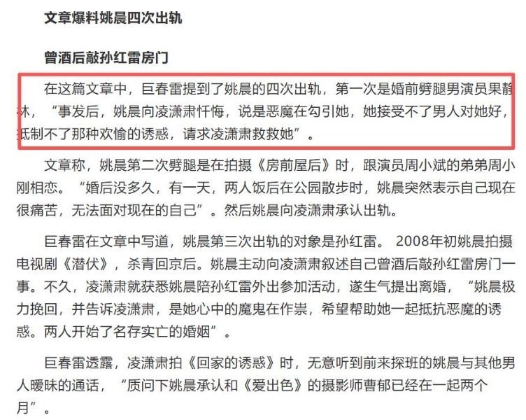 姚晨没想到,官宣离婚1天,被曝出轨4次,凌潇肃口碑意外暴增